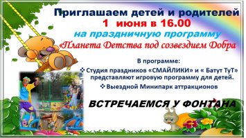 Приглашаем детей и родителей 1 июня в 16:00 на праздничную программу «Планета Детства под созвездием Добра»
